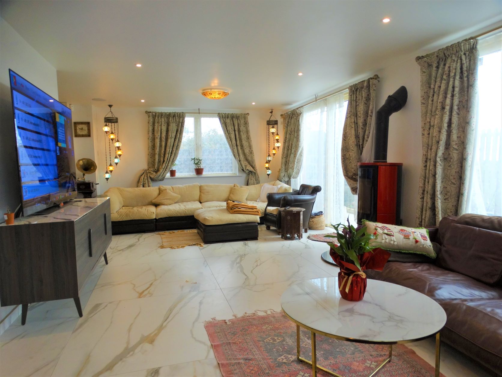 This spaciously designed house comprises of wrap around open plan reception rooms to include the kitchen, dining area, living room & sitting room. The entire house has been modernised with neutral wall finishes, high standard of floor finishes, bespoke kitchen, upgraded appliances, high spec Alucald windows & doors, decorative & spot lighting, high levels of insulation added, feature solid fuel stove in living room, under floor heating in selected rooms, monitored alarm system, outside sockets & taps, mini electric car charging port, top of the range solar panel system and floored attic.