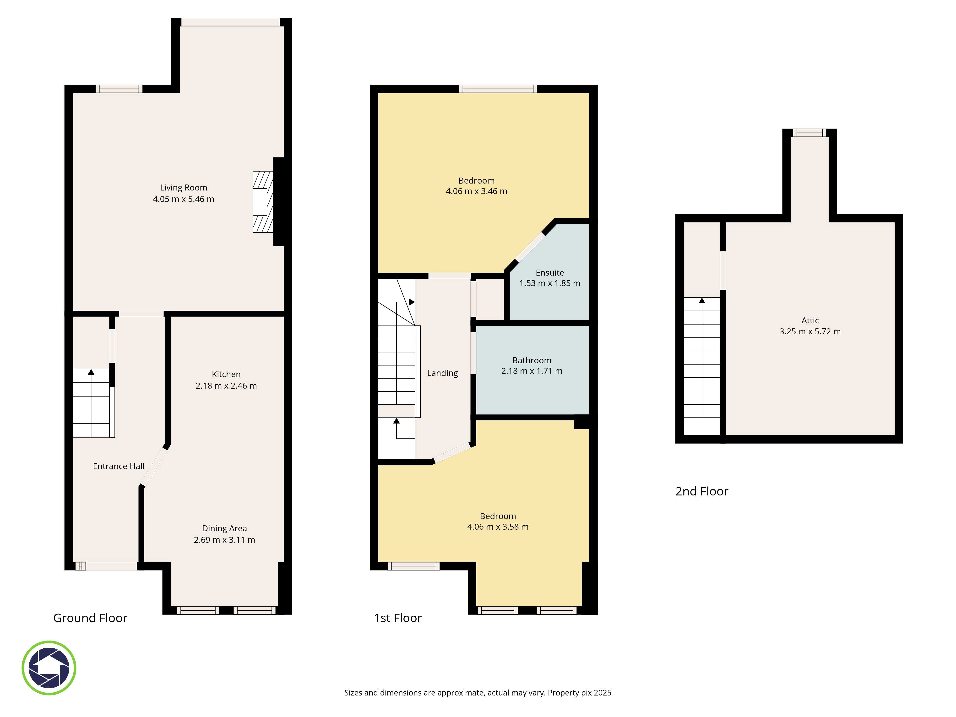 On the first floor, there are two generousdouble bedrooms, one with ensuite and a fully tiled family bathroom withelectric shower. The second floor comprises of a third double bedroom withbuilt-in storage and access to the attic, providing additional flexibility.